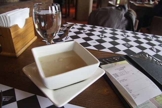 濃湯!!!呵呵,為什麼那麼多驚嘆號呢?因為這濃湯我好愛(轉圈),一般到外面用餐的濃湯不外乎就是玉米濃湯之類,而他的濃湯像是小時候會吃的粥,味道很懷舊,不難喝,意外的我喝了好多口。