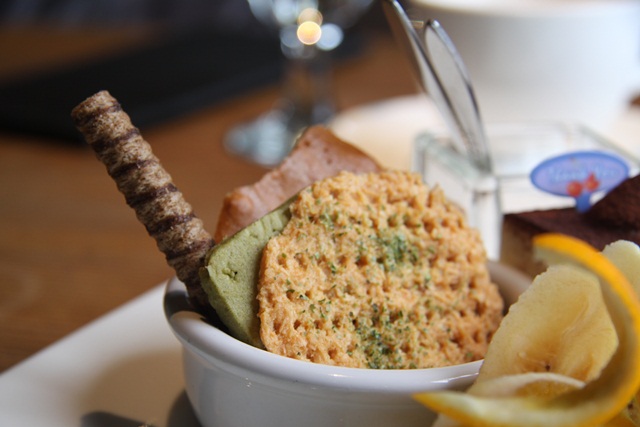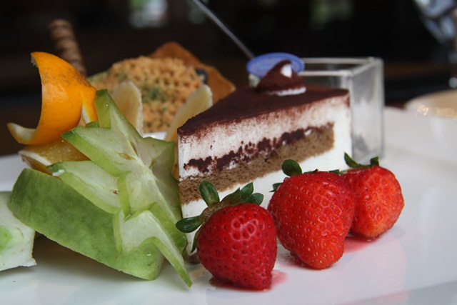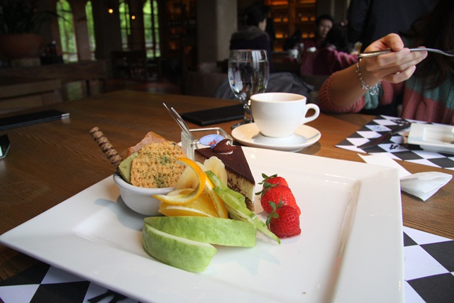 哈哈,接著的這盤可就不是套餐裡的東西了,是姊姊因為突然想吃蛋糕而點的「蛋糕拼盤」,蛋糕口味是她愛的提拉米蘇,這兒的提拉米蘇,呵就好吃多了,不會吃一口就讓我翻白眼。