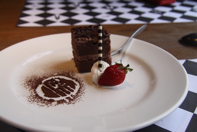精緻甜點,巧克力蛋糕,小小一塊沒有什麼特別,可是口味我喜歡,草莓就…留給我姊囉!