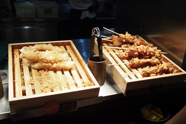 「炸物」有炸雞塊、現炸大蝦和炸地瓜餅。