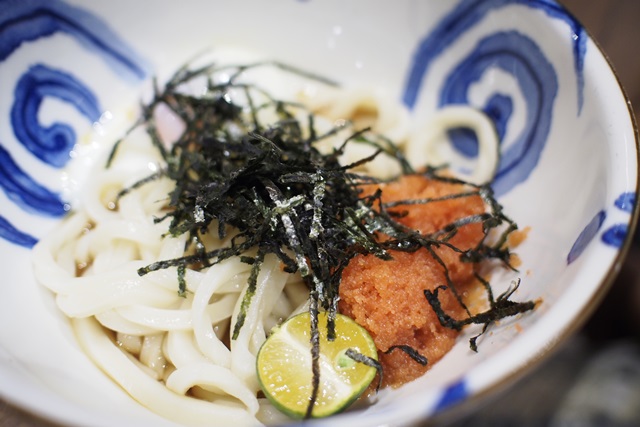 淳點得「明太子烏龍麵(冷)」有溫泉蛋!份量少得有點讓我們不知所措,對於大食量的男士們大概要吃個兩碗才會有飽足感,也可以選擇加麵(30元),而對於小鳥胃的女生來說份量就很剛好,那天也許是下午有吃點小點心的關係我竟然還有點飽足感,小小一碗卻好滿足,味道很美味,麵條是我很喜歡的粗麵條,冷麵條嘗起來 q 彈有嚼勁,就我不太習慣喝湯就是了。