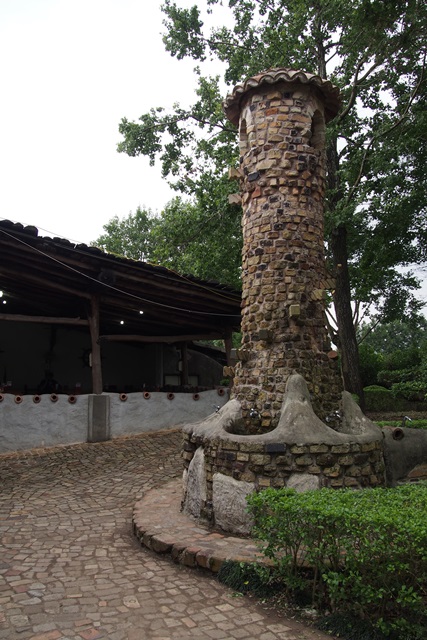 沿著地圖往下走,會經過「木屋餐廳」,木屋最大的特徵這是照片中的石柱洗鈄台,走進這裡恍如來到了鄉村般的錯覺,我們沒有多作停留而是繼續逛下去。