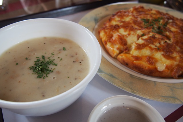 套餐附濃湯、甜點和飲料,濃湯喝起來就一般般,倒是他的甜點…杏仁粉的味道好重(噁)。