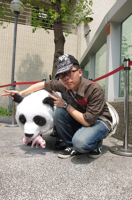最後一站是熊貓!咦!不對這是倒數第二站,最後一站是關在玻璃屋裡的懶尾熊,不過這次來沒看到熊貓,牠好像有 baby(不確定,忙到連關注新聞的時間都沒有)所以屋子裡空蕩蕩,難怪那天都不用抽號碼牌排隊,只好派香腸和熊貓合照一張。